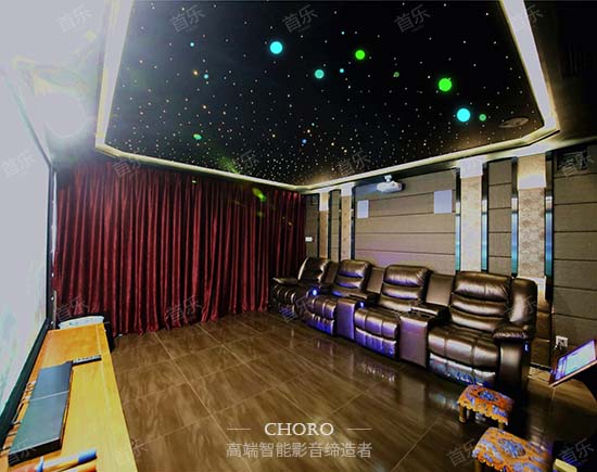 业主黎姐,土生土长的广州本地人,为人热情大方,比较豪爽好沟通,较热爱生活,喜欢整洁把家打理的井井有条,追求高质素的生活品质。装此间影院主要是女主人黎姐特别爱好唱歌,没装影院之前,也是经常会约上三两好友去商业KTV聚会K歌,女主人黎姐是希望影院装有梦幻的星空顶,让唱歌模式更加迎合。